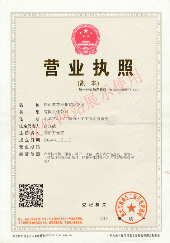 唐山荷花種業(yè)有限公司始創(chuàng)于1984年,一直秉承“科技為先,誠信為本”的發(fā)展指導(dǎo)戰(zhàn)略,注冊(cè)商標(biāo)“荷花”牌,經(jīng)過三十多年的發(fā)展,建立了從親本選育、試驗(yàn)示范、生產(chǎn)檢驗(yàn)、精選加工、推廣銷售及農(nóng)業(yè)技術(shù)咨詢一體化的經(jīng)營體系,目前擁有試驗(yàn)基地、繁育基地、制種基地、及規(guī)?;N子冷貯藏庫,完善了由科研、檢驗(yàn)、生產(chǎn)、銷售各個(gè)配套環(huán)節(jié)。荷花牌系列種子正是我們?cè)趫?jiān)持“誠信、品質(zhì)、開拓、創(chuàng)新”的企業(yè)精神下打造的種子品牌,如今,在全國已形成強(qiáng)勢(shì)品牌效應(yīng),是一個(gè)值得信賴與具有一定影響力的種子品牌,在全國廣大用戶中贏得了良好的口碑和信譽(yù)... ...